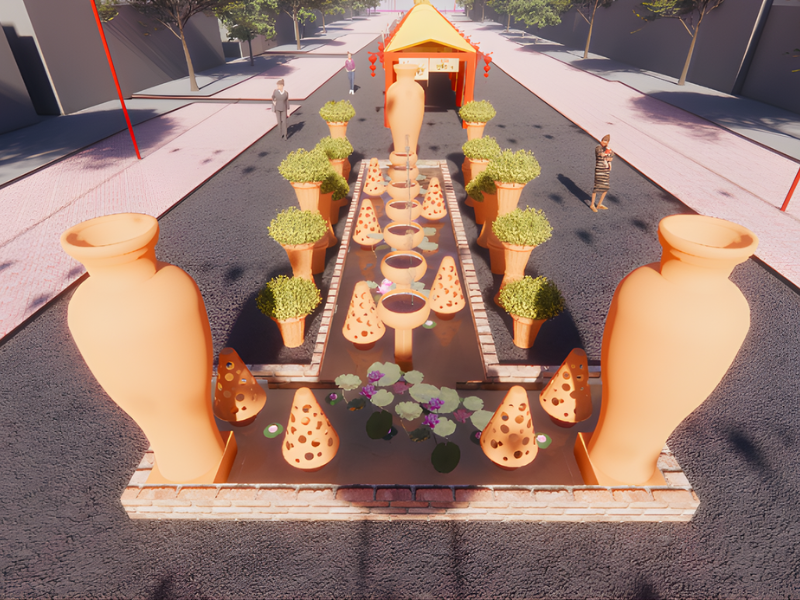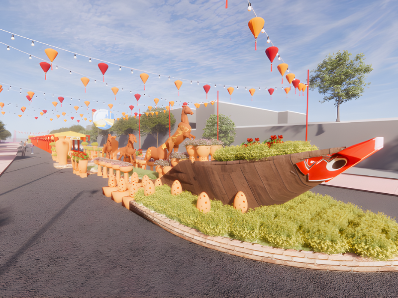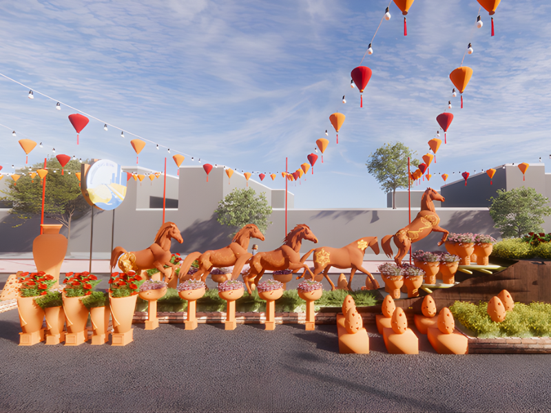 Phối cảnh không gian Tết truyền thống.